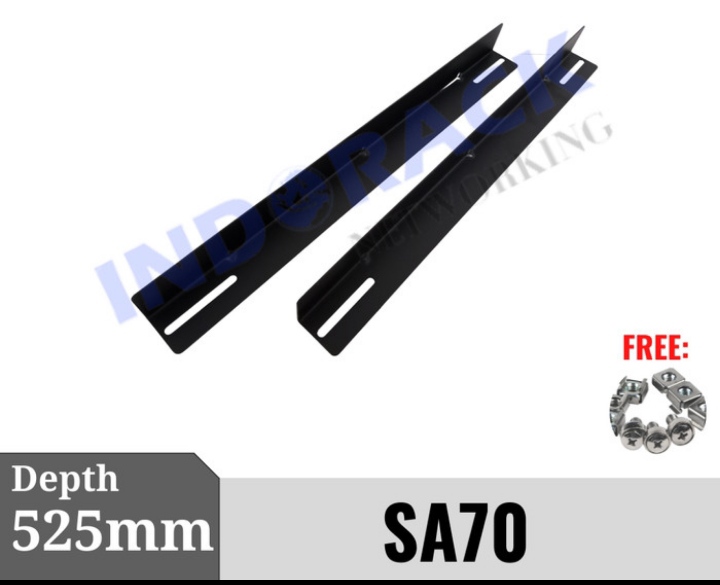 Indorack Support Angle SA70 Depth 525mm For Wallmount 700mm Rak Siku L Specification : Product Type: Support Angle Type: SA70 Depth: 525mm Size : Length 525 x 43mm Material : Aluminium Max. Loading : 20Kg Ketebalan : 1,48mm Compatible With Wallmount Rack Depth 700mm Support Angle Included Item: -1 Set Support Angle (2 Pcs) -4 Set Cagenut & Screws