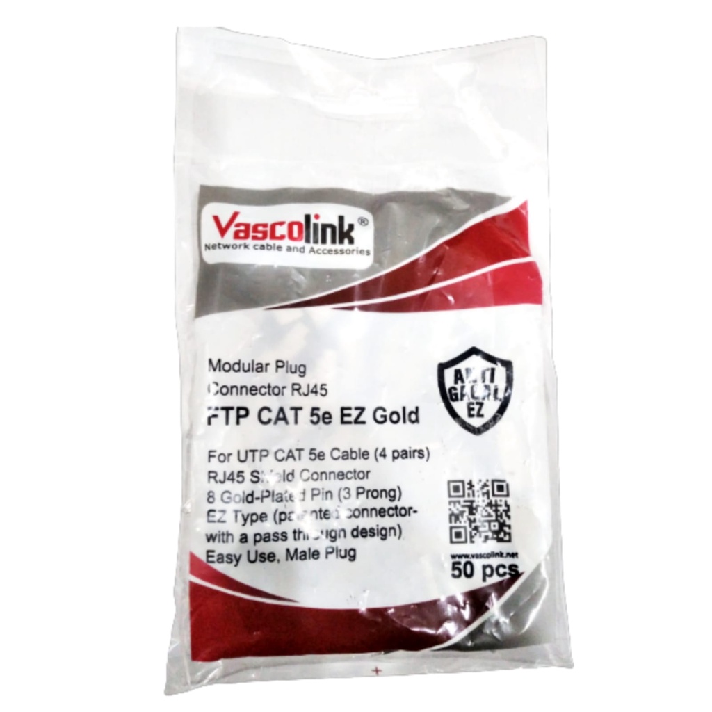 Spesifikasi * RJ45 FTP CAT5E * Cable Function : Connector * Cable Type : Network Package * Qty : 1 pack @50 pcs ANTI GAGAL