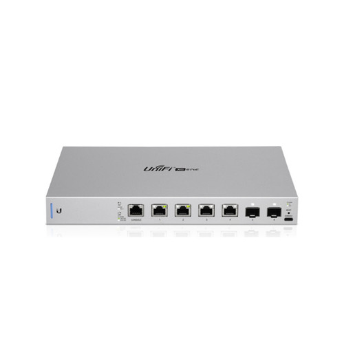 UniFi Switch XG 6 PoE (US XG 6 PoE) is a fully managed Layer 3 switch with (4) 1/2.5/5/10 Gigabit 802.3bt (PoE++) RJ45 ports. The 802.3bz compliant ports extend Multi-Gigabit range over existing cabling. (2) 10G SFP+ uplinks offer link aggregation for higher capacity and increased availability. The US XG 6 PoE features a rich set of Layer 2 capabilities and integrates Layer 3 functionality such as inter-VLAN routing, static routing, and DHCP server. Each 10G PoE++ port provides up to 60W of PoE power, making the US XG 6 PoE ideal for use with UniFi BaseStation XG, UniFi UAP XG, and UniFi UAP SHD. The UniFi Network and Protect applications (web and mobile) allow admins to configure and monitor virtually all of the switch features in an intuitive graphical user interface from anywhere.